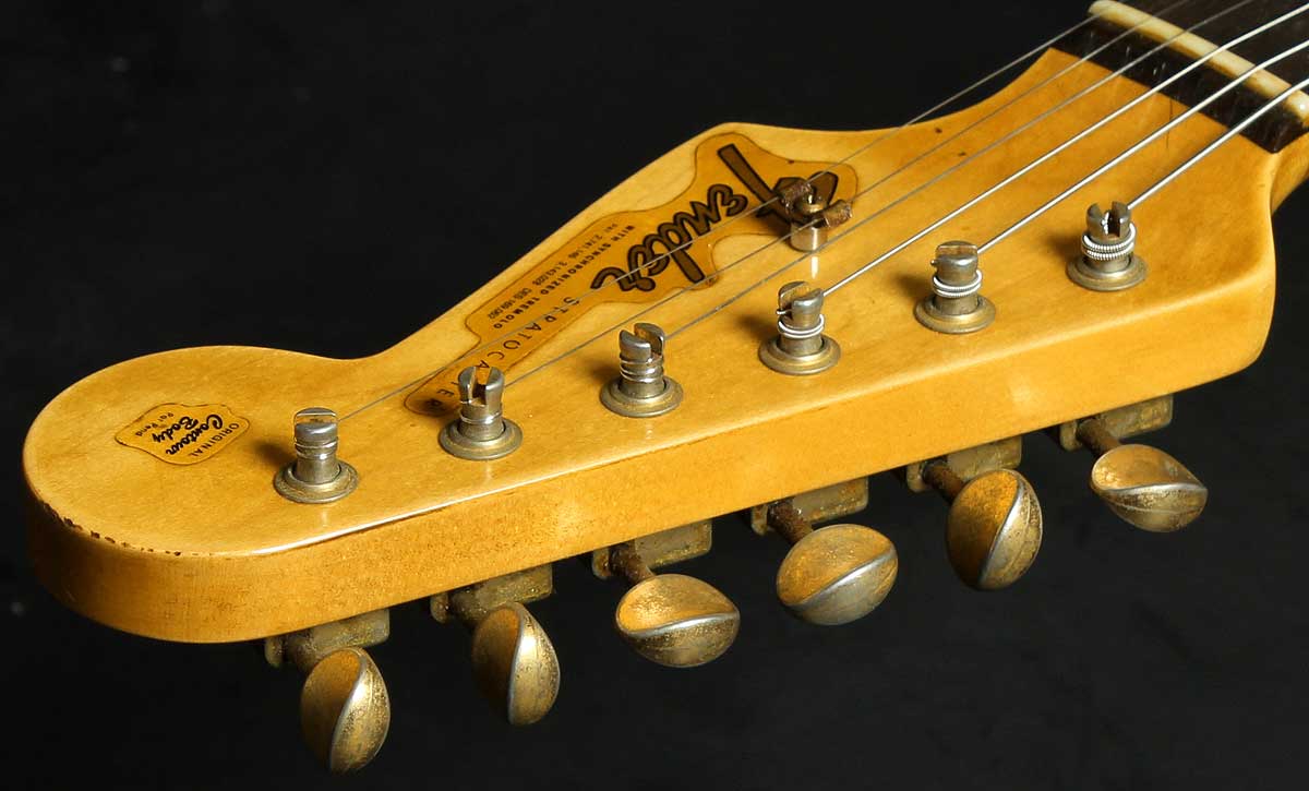 | コロナ工場にて選定したスペックピース(1本物)。 トラロゴにクレイドットは64年過渡期のモデル。 9,5ラジアスにアメリカンスタンダードフレットを採用したネックは演奏性を優先さ、多くのプレイヤーに好んでいただける仕様です。 ピックアップはカスタムショップセールス担当のマイク・ゲーガンのアドバイスからタッドがデザインしたニューピックアップ“FAT 60s”。もちろんアビー女史ハンドワウンドです。ファットでふくよかなミッドを持ったトーンは気持ちの良いクランチサウンドからディストーションサウンドを作り出します。 ピックガードはパールタイプが採用されていますがパーチメント(白レリック)の物も付属しており、お好みで選べます。 |