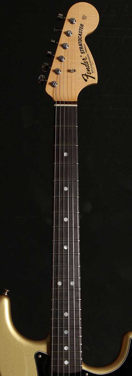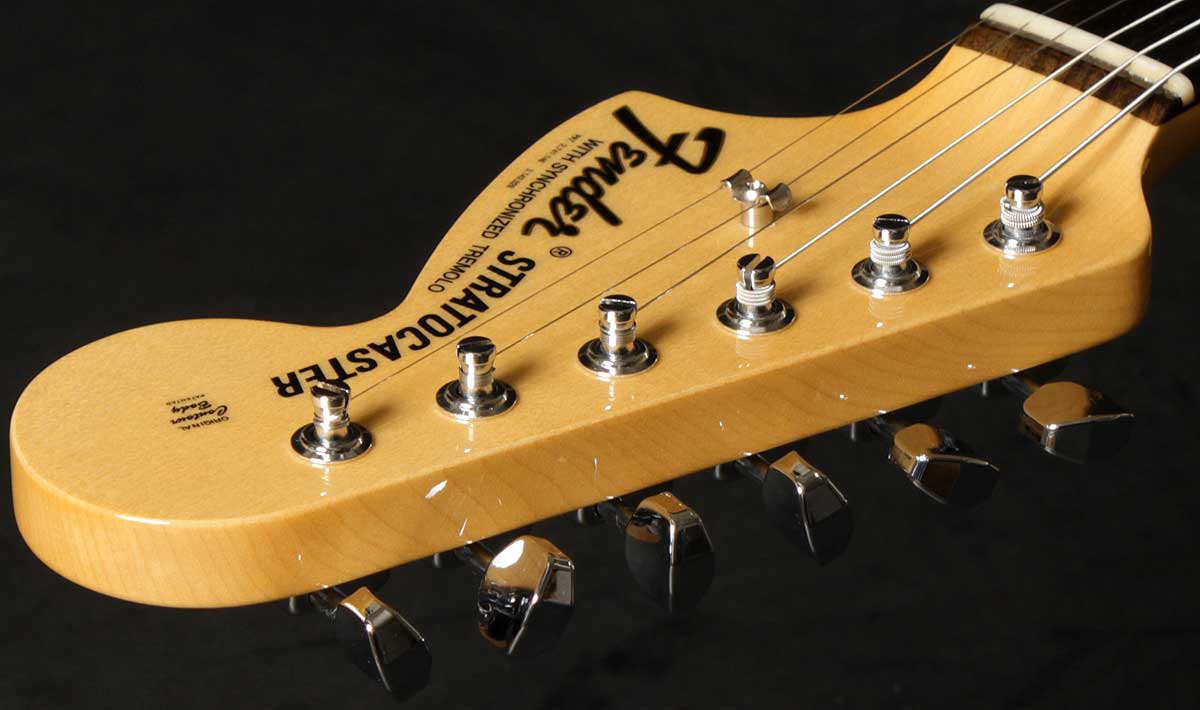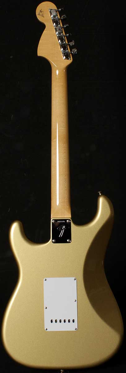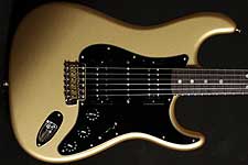 | 2011年11月にグレッグのベンチにてオーダーしたショップオリジナルです。 先だって、行われた某バンドのギターリストNSが70年代後半に使っていたストラトをプチ再現。(笑) プレイヤーコーポレーション発行の「The Guitar 2」のP62に載っているギターです。 プチ再現なのでドンズバではありません。ペグをシャーラーに変更して、ストリングスガイドを1個増設やして、ブリッジサドルをソリッドブラスに変更すれば、ほぼドンズバになります。 実はグレッグのベンチにて、ソリッドブラスサドルをオーダーしたのですが、NGが出てしまいました。その代わりにブラスでヴィンテージタイプのプレスサドルブリッジならOKとのことで、ヴィンテージタイプブラスサドルを採用しました。このタイプのサドルは嘗てジョン・イングリッシュがNAMMに出品したギターで採用されていたようです。 演奏性を考えて9,5ラジアスフィンガーボードにJD6105(ナロージャンボフレット)にしました。 ピックアップはリアにTB-14(Custom 5)、ミドルにハンドワウンド69ピックアップ、フロントにダンカン'59を採用しました。あくまでもヴィンテージサウンドで!しかしハードなサウンドで!と言うことでの組み合わせです。 軽量アルダーボディーに、目の詰まったクォーターソーンメイプルネックが、いい鳴りを響かせてくれています。 |