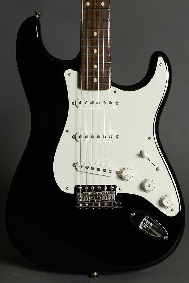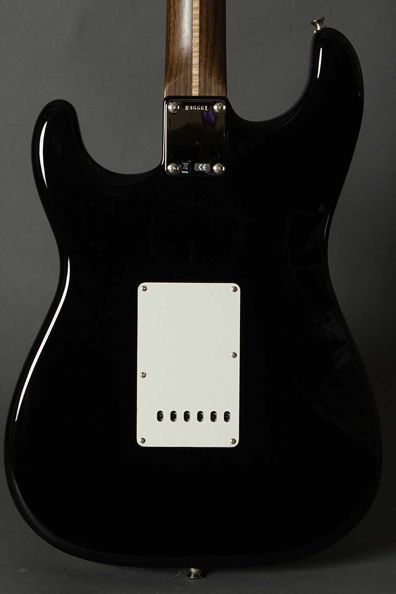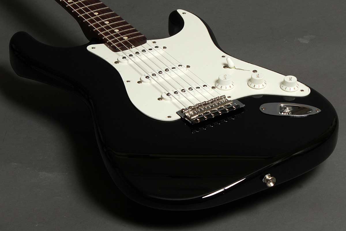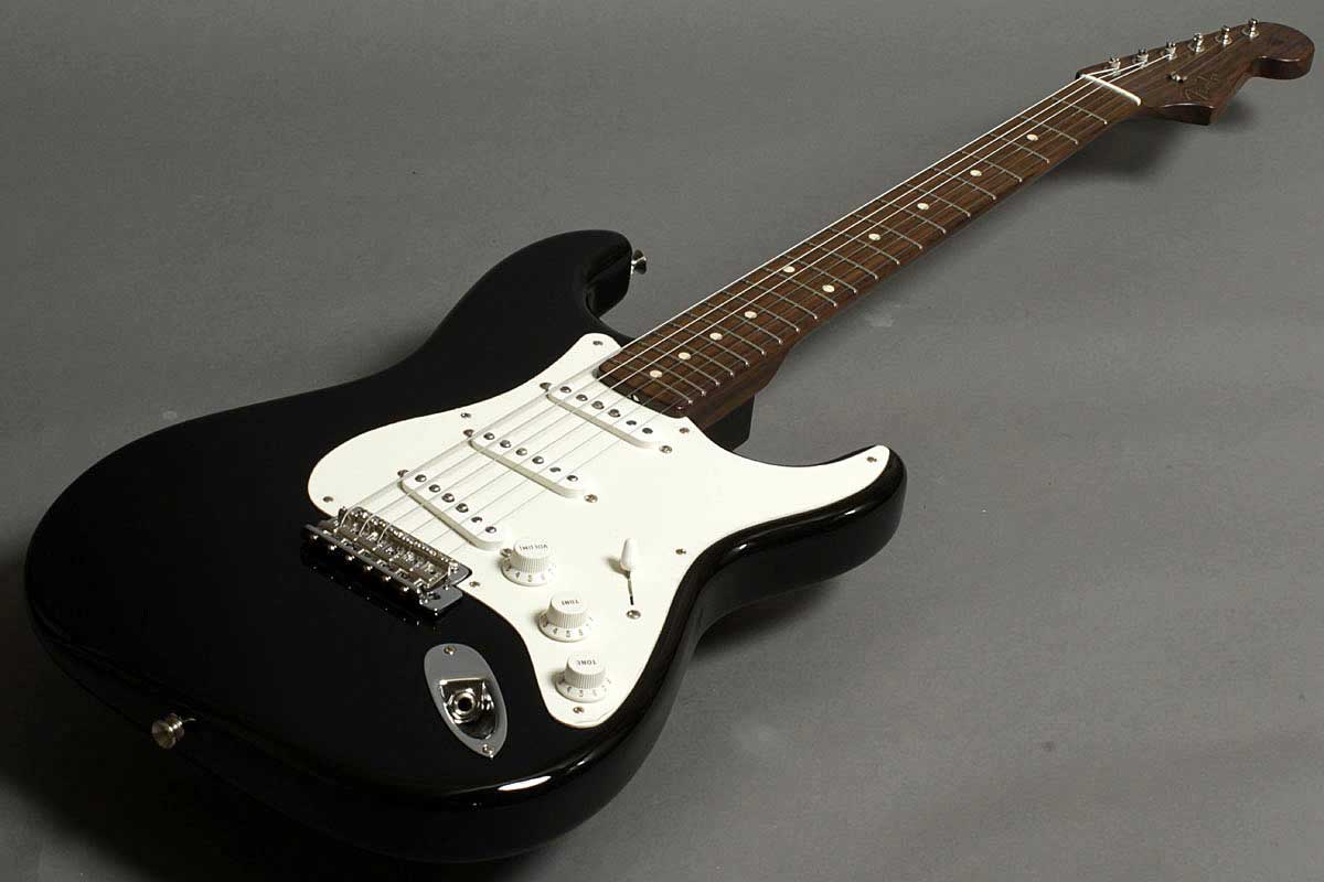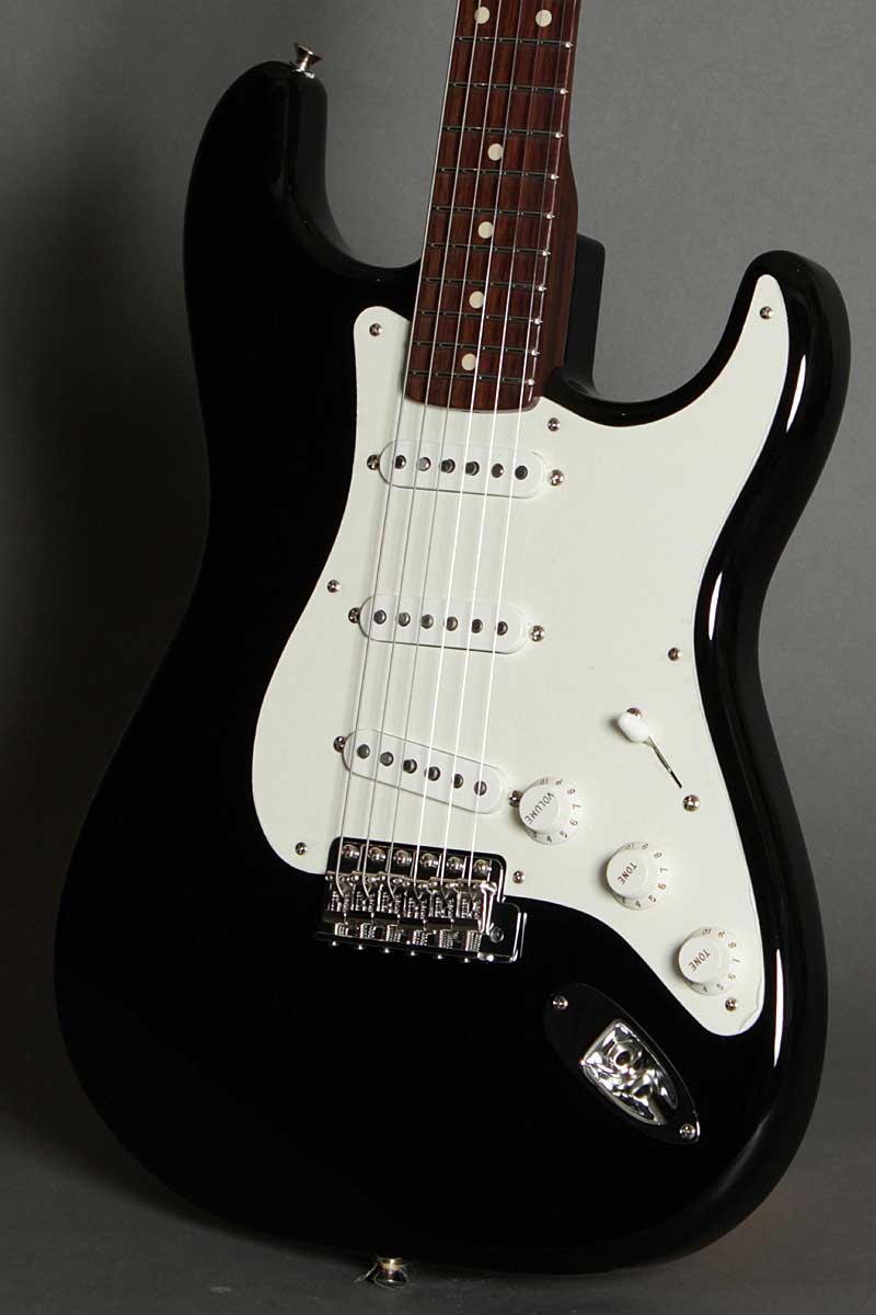 | ショップオーダーの1ピースローズウッドネックの57ストラト。 オリジナル1957年製のローズウッドネックストラトにはトラスロッドが入っていませんでしたが、このオーダーしたギターにはトラスロッドを入れネック調整を可能にしました。スカンクラインにはメイプルを採用しています。さりげなくフレイムメイプルを使ってるあたりがオシャレですね。 フィンガーボードのラジアスは9,5インチでフレットは6105を採用し、コレクターズアイテムとしてだけでなく、演奏性にも考慮しています。ピックアップはファット50sを搭載しています。 メイプルネックのストラトよりも芯のあるエッジの効いたサウンドはローズウッドネックならではです。 イーグルスのジョーウォルシュもローズウッドネックストラトがお気に入りのようで、クリスフレミングのものであったり、他社のコピーモデル(?)だったりします。 |
